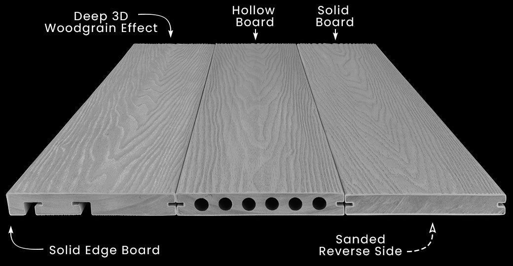 Our Solid Edge Boards are designed for use on the perimeter edges and stepped sections of your deck providing versatility to conceal any exposed sides with either fascia or deck boards.